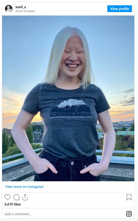 Xueli is dedicated to raising awareness about individuals with albinism.